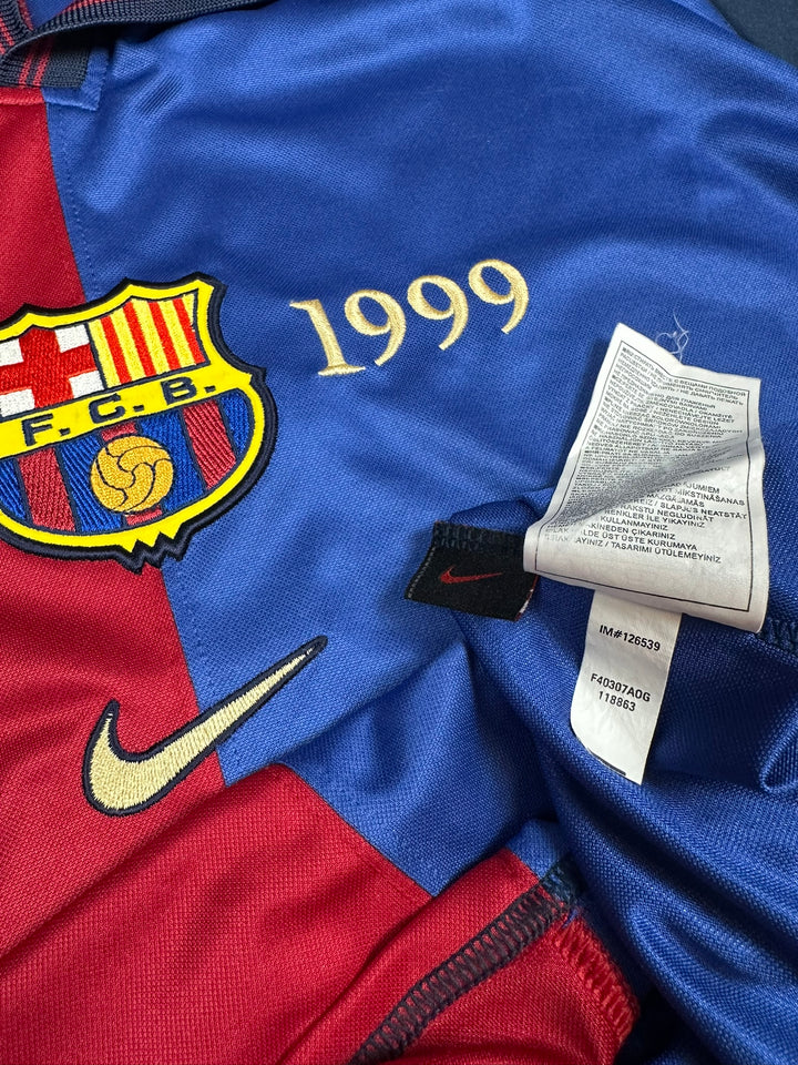 - Saison: 1999-2000 (Das 100 Jahre Jubiläumstrikot von FC Barcelona wurde im Jahre 2005 nochmal von der Marke Nike reproduziert, es handelt sich bei diesem hier genau um diese Version von 2005)