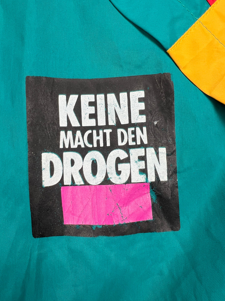 - Version: Spielerjacke (Diese Jacken haben nur die DFB Spieler bekommen, die Fanshop Jacken/Shirts hatten keine "Mercedes Benz" und "KEINE MACHT DEN DROGEN" Applikationen.