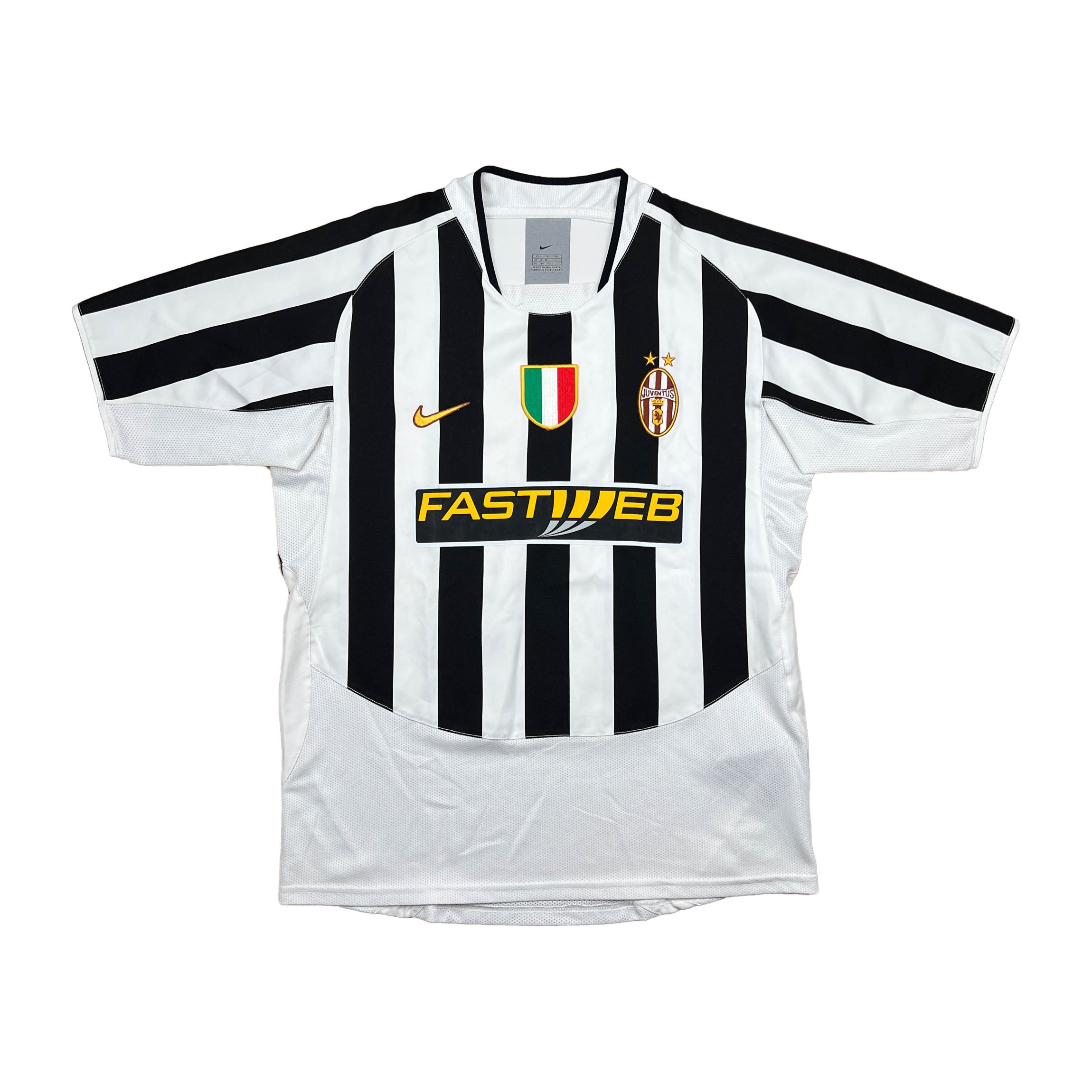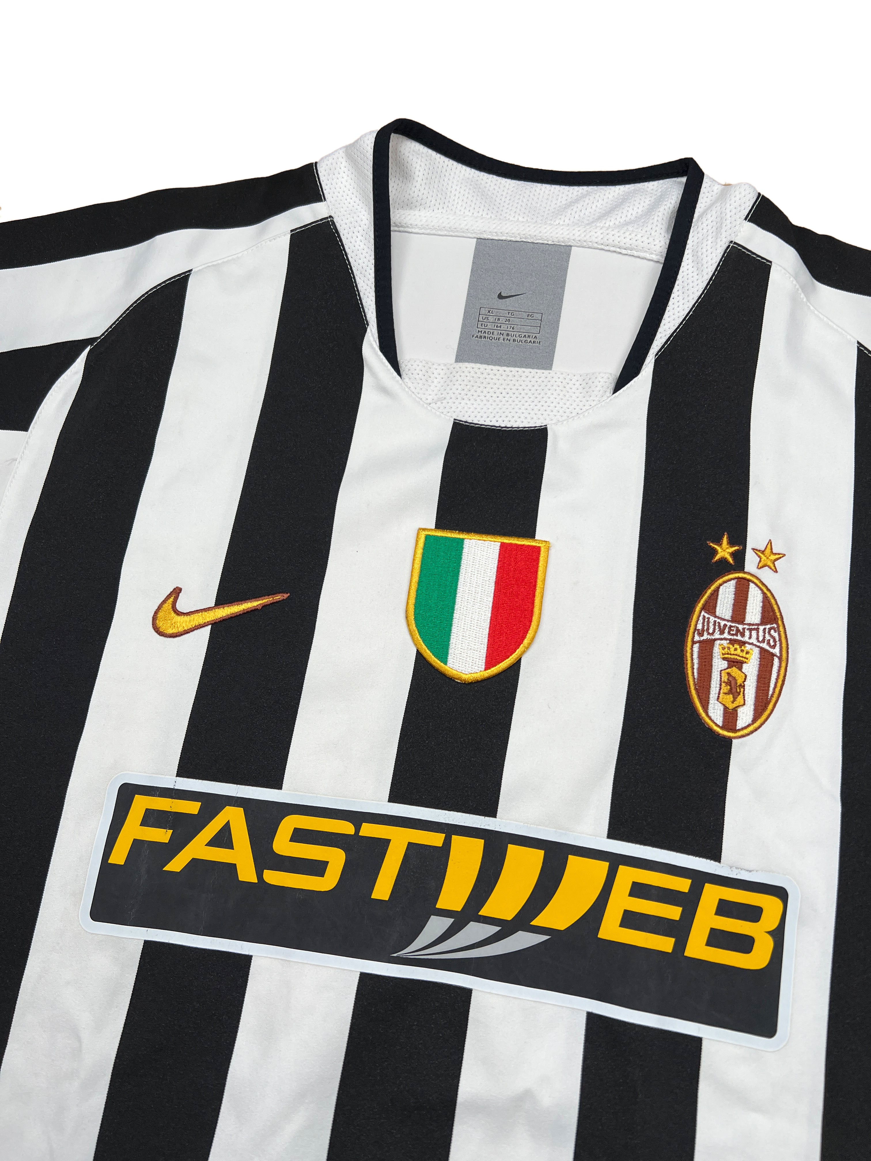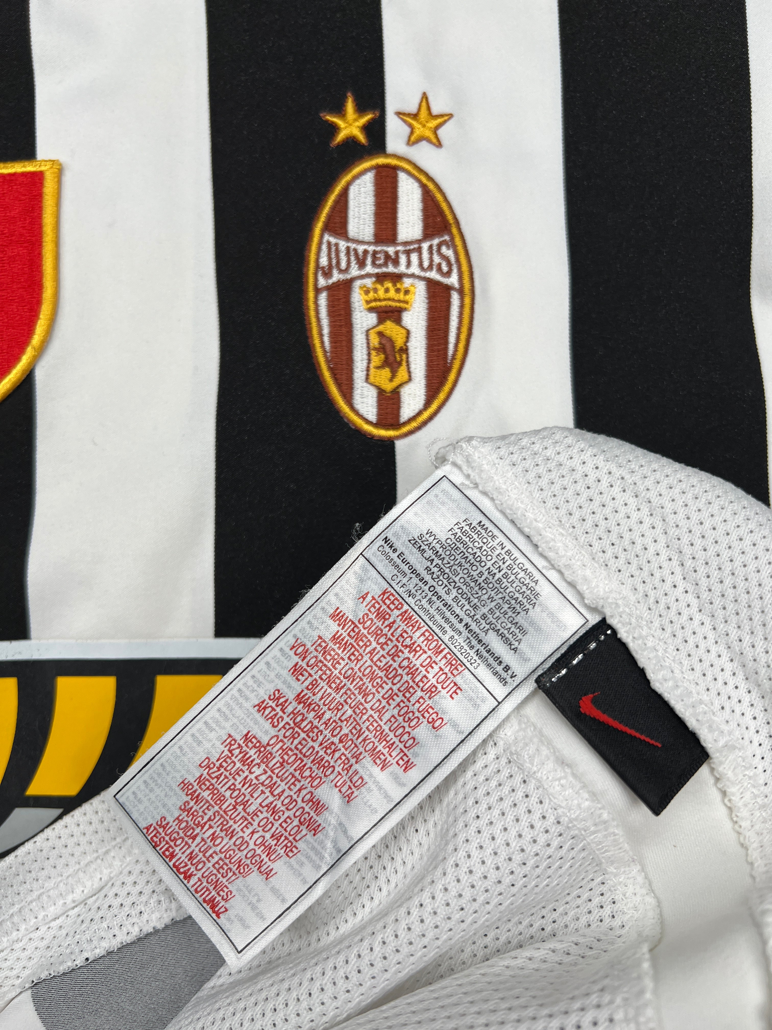 - Zustand: Zufriedenstellend. Das Nike-Logo und das Juventus-Wappen sind bräunlich verfärbt. (Unsere Zustandsskala)